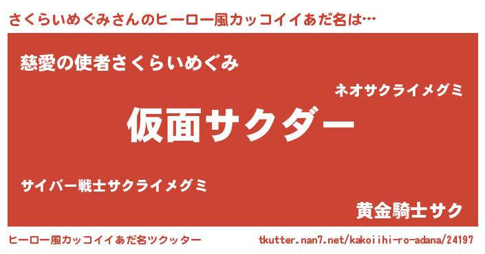 | ヘコむあだ名 | 『さくを』『さくらいめぐみ(笑)』 |