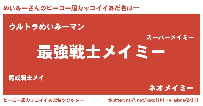 | 伝説のあだ名 | 『最強の忍者めいみー』 |