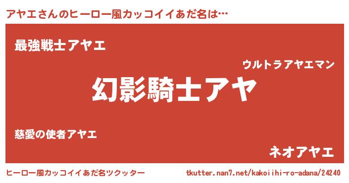 | 意味不明あだ名 | 『とにかく怪しいアヤエ』『自称アヤエ』 |