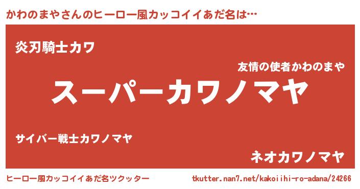 | 胡散臭い通販商品みたいなあだ名 | 『モテモテ間違いなし霊験あらたかなお札…その名も「かわのまや」』 |