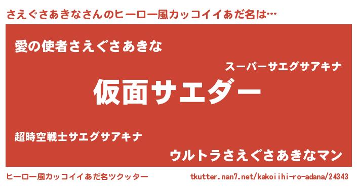 | 男性向けラノベタイトル風あだ名 | 『この素晴らしい世界にさえぐさあきなを!』 |
