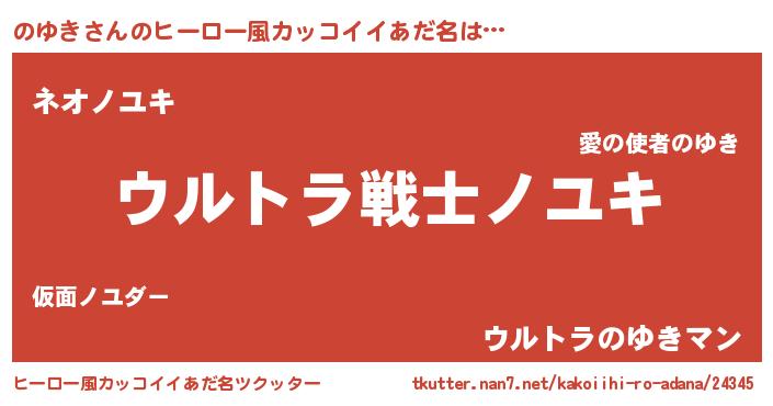 | 男性向けラノベタイトル風あだ名 | 『ノユキスレイヤー』 |