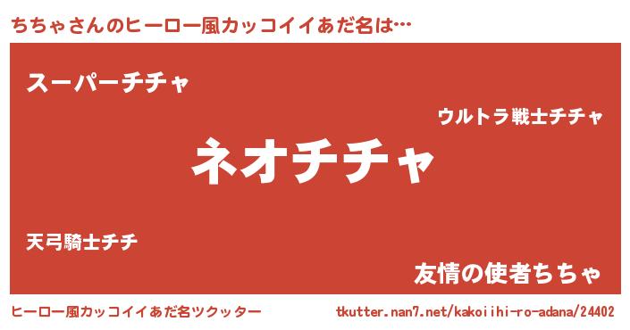 | 女子向けラノベタイトル風あだ名 | 『ちちゃの契約王妃』『ちちゃ恋絵巻』 |
