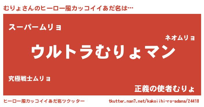 | 男性向けラノベタイトル風あだ名 | 『うちの娘の為ならば、俺はもしかしたらむりょも倒せるかもしれない。』 |