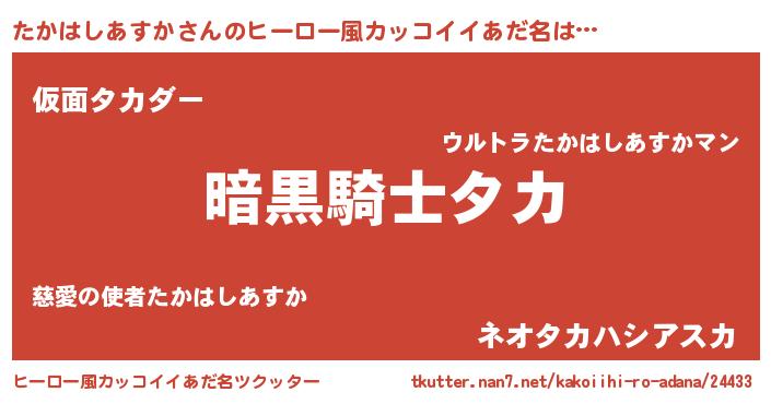 | ヘコむあだ名 | 『たかを』『たかはしあすか(爆)』 |