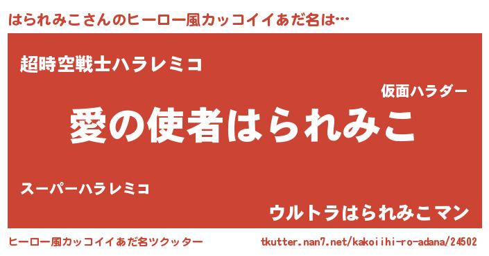| 男性向けラノベタイトル風あだ名 | 『おまえをオタクにしてやるから、俺をはられみこにしてくれ! 』 |
