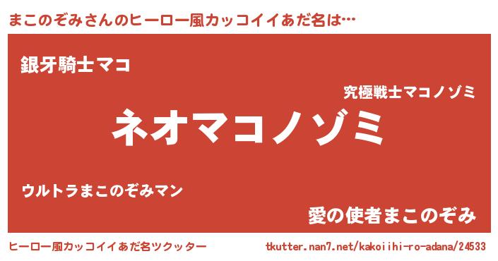 | 女子向けラノベタイトル風あだ名 | 『異世界で失敗しない100のまこのぞみ』 |