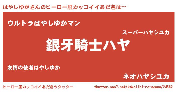 | ポケモン風あだ名 | 『ヒハヤシユカ』『ハヤシダネ』 |