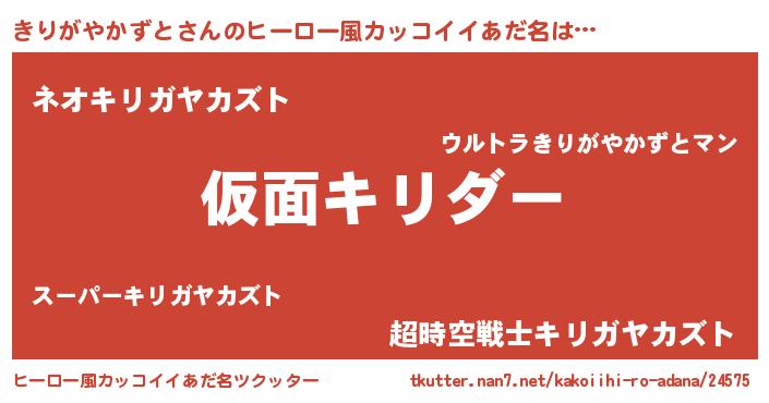 | 男性向けラノベタイトル風あだ名 | 『転生したらきりがやかずとだった件』 |