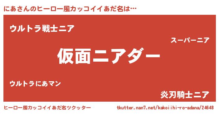 | 男性向けラノベタイトル風あだ名 | 『この素晴らしい世界ににあを!』 |