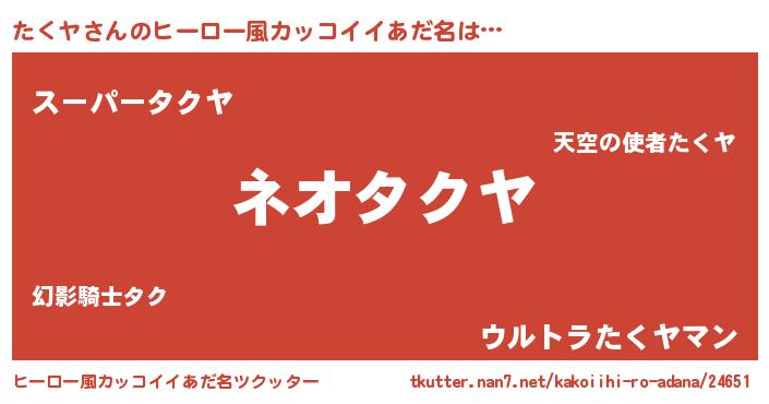 | 男性向けラノベタイトル風あだ名 | 『転生したらたくヤだった件』 |