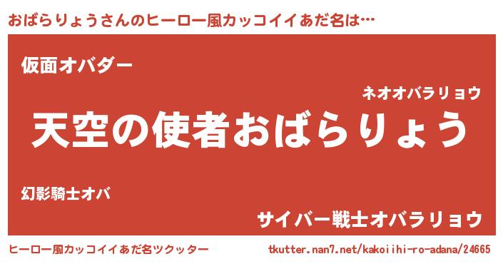 | 男性向けラノベタイトル風あだ名 | 『ノーゲーム・ノーオバラリョウ』 |