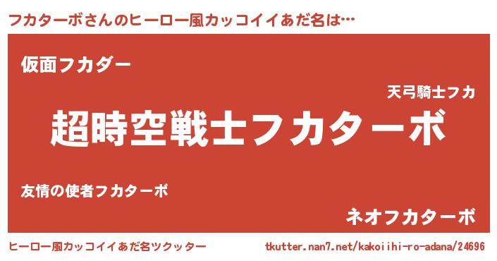 | 女子向けラノベタイトル風あだ名 | 『フカターボなんてお断りですっ。』 |