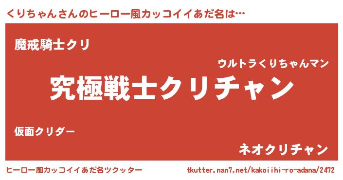 | 女子向けラノベタイトル風あだ名 | 『くりちゃんストレイドッグス』 |