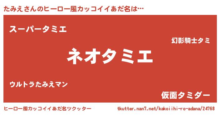 | 男性向けラノベタイトル風あだ名 | 『たみえに滅ぼされるだけの簡単なお仕事です』 |