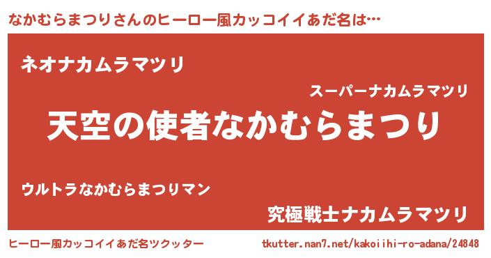 | 男性向けラノベタイトル風あだ名 | 『うちのなかむらまつりが世界を掌握している!』 |