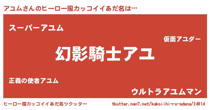 | ポケモン風あだ名 | 『アユゴンZ』『ヒアユム』 |