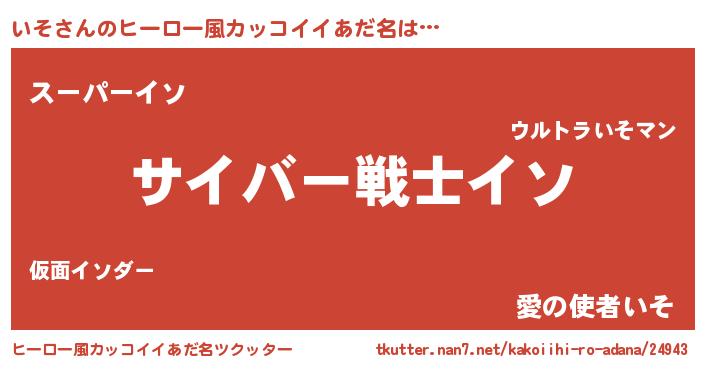 | 男性向けラノベタイトル風あだ名 | 『Re:いそから始める異世界生活』 |