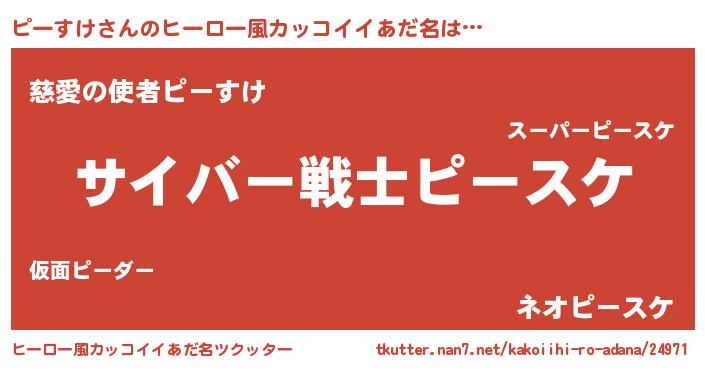 | 女子向けラノベタイトル風あだ名 | 『闇のピーすけ』『ピーすけ恋絵巻』 |