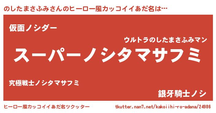| 男性向けラノベタイトル風あだ名 | 『転生したらのしたまさふみだった件』 |