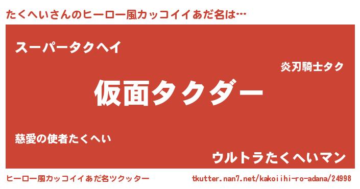 | 男性向けラノベタイトル風あだ名 | 『この素晴らしい世界にたくへいを!』 |