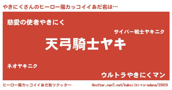 男性向けラノベタイトル風あだ名 | 『やきにくの嫁は女の子じゃないと思った?』 |