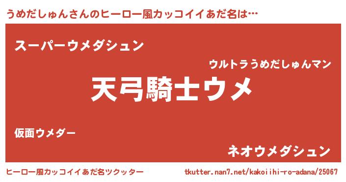 | ポケモン風あだ名 | 『ウメゴンZ』『ヒウメダシュン』 |