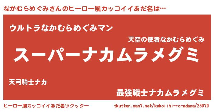 | 男性向けラノベタイトル風あだ名 | 『緋弾のナカムラメグミ』 |