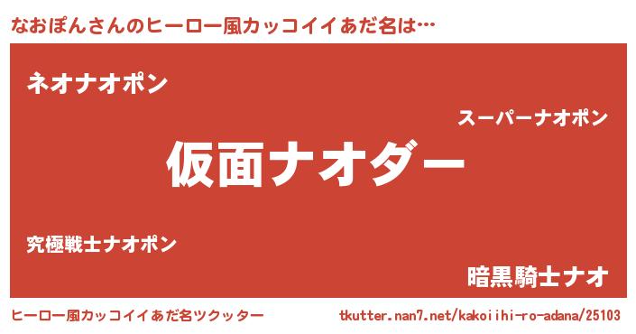 | 男性向けラノベタイトル風あだ名 | 『この素晴らしい世界になおぽんを!』 |