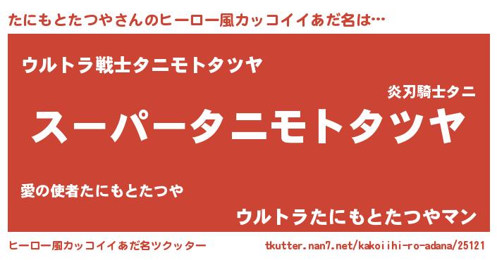 | 胡散臭い通販商品みたいなあだ名 | 『モテモテ間違いなし霊験あらたかなお札…その名も「たにもとたつや」』 |