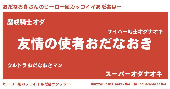 | 男性向けラノベタイトル風あだ名 | 『転生したらおだなおきだった件』 |