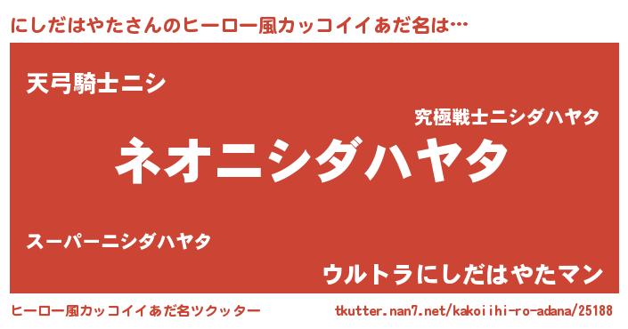 | ポケモン風あだ名 | 『ゼニニシ』『ヒニシダハヤタ』 |