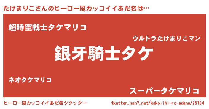 | ヘコむあだ名 | 『たけっ子』『たけもー』『なまこ酢』 |