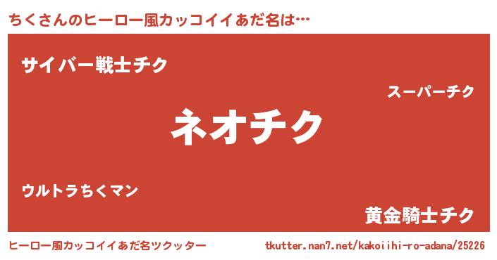 | 男性向けラノベタイトル風あだ名 | 『ちくという概念が存在しない退屈な世界 』 |