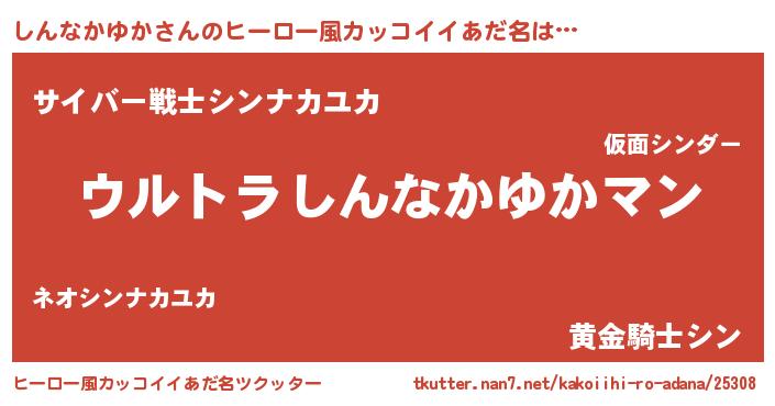 | 欧米人風あだ名 | 『しんなかゆかクリステル』 |