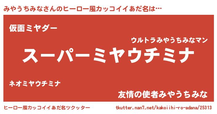 | 胡散臭い通販商品みたいなあだ名 | 『必ず成功するブレスレット…その名も「みやうちみな」』 |