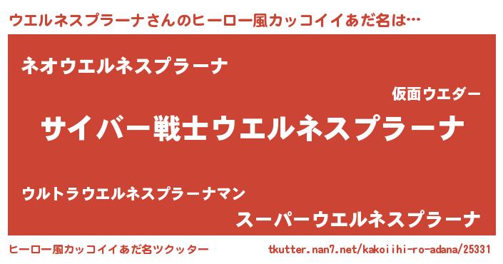 | 男性向けラノベタイトル風あだ名 | 『Re:ウエルネスプラーナから始める異世界生活』 |