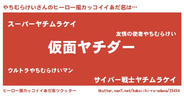 | 女子向けラノベタイトル風あだ名 | 『やちむらけいが死なない童話 林檎のやちむらけいの診療簿』 |