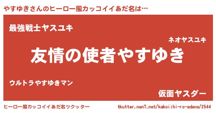 | 男性向けラノベタイトル風あだ名 | 『おまえをオタクにしてやるから、俺をやすゆきにしてくれ! 』 |