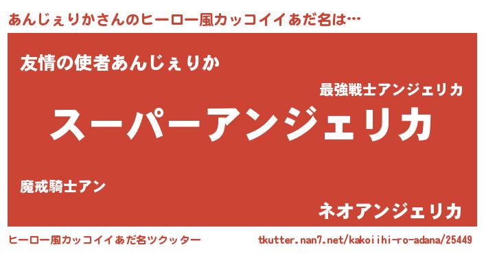 | 男性向けラノベタイトル風あだ名 | 『あんじぇりかの憂鬱』 |