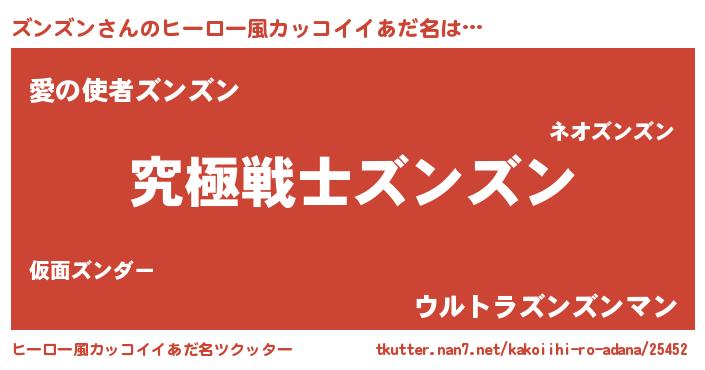 | 男性向けラノベタイトル風あだ名 | 『Re:ズンズンから始める異世界生活』 |