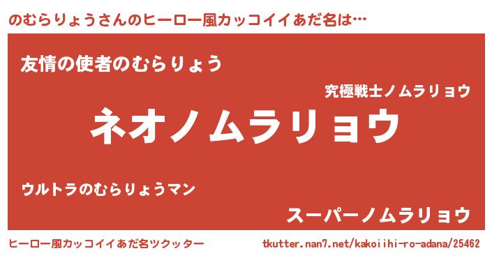 | 男性向けラノベタイトル風あだ名 | 『転生したらのむらりょうだった件』 |