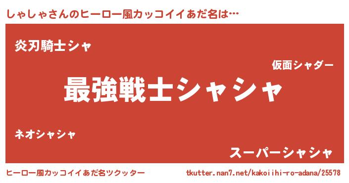 | 男性向けラノベタイトル風あだ名 | 『Re:しゃしゃから始める異世界生活』 |