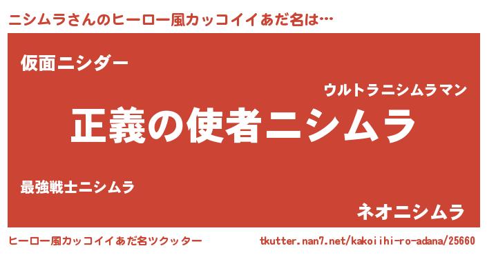 | 男性向けラノベタイトル風あだ名 | 『おまえをオタクにしてやるから、俺をニシムラにしてくれ! 』 |