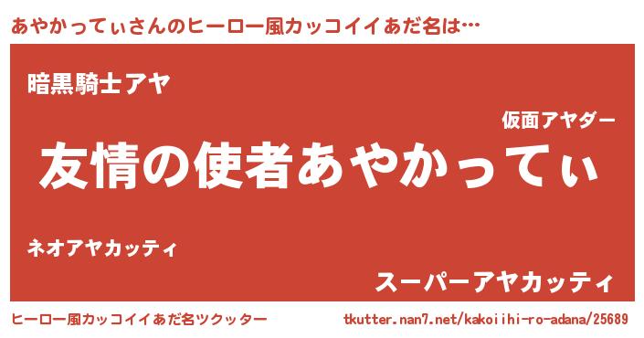 | 男性向けラノベタイトル風あだ名 | 『おまえをオタクにしてやるから、俺をあやかってぃにしてくれ! 』 |