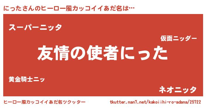 | 男性向けラノベタイトル風あだ名 | 『おまえをオタクにしてやるから、俺をにったにしてくれ! 』 |