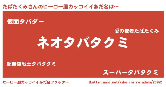 | 男性向けラノベタイトル風あだ名 | 『たばたくみに滅ぼされるだけの簡単なお仕事です』 |