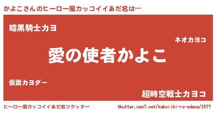 | 女子向けラノベタイトル風あだ名 | 『かよこの玉の輿計画!』 |