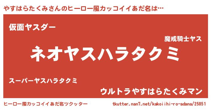 | 伝説のあだ名 | 『古文書に記された勇者やすはらたくみ』 |