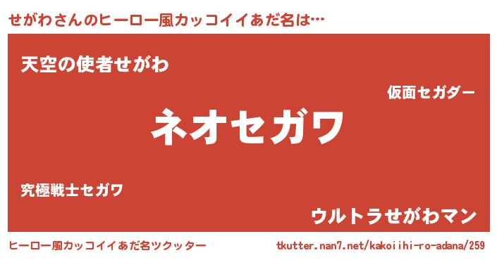 | 伝説のあだ名 | 『古文書に記された暗殺者せがわ』 |